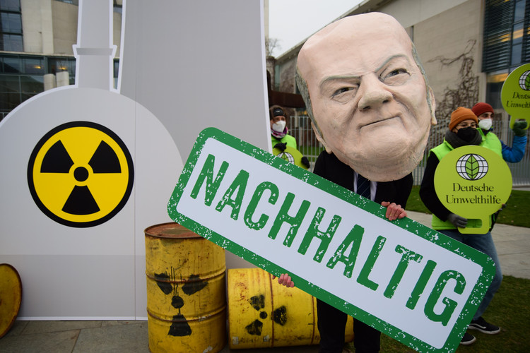 Aber jetzt mal von vorn. Worum geht es bei unserem Protest? Seit Jahren rühmt sich die EU als Umwelt- und Klimaschutzvorreiter in der Welt. Und dann das: Die EU-Kommission will in der sogenannten Taxonomie-Verordnung (noch genauer in Beamtendeutsch: im Delegierten Rechtsakt zur Taxonomie-Verordnung) Atom- und Gaskraftwerken ein grünes Klimaschutz-Etikett verpassen. Gewaltige Summen, die im hunderte Milliarden Euro schweren EU-Corona-Wiederaufbaupaket eigentlich für nachhaltige Energien wie Windkraft und Solar vorgesehen waren, können damit teils in fossile und atomare Anlagen gesteckt werden. Auch Geld privater Anleger soll so zu den umweltfeindlichen Technologien umgelenkt werden. Wissenschaftliche Erkenntnisse? Spielen keine Rolle.
