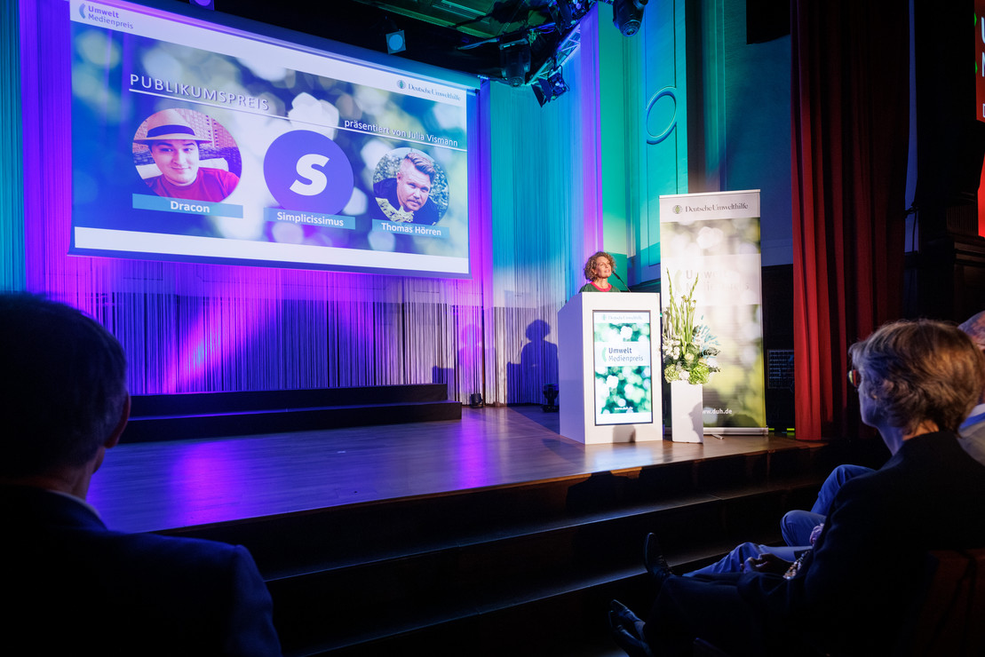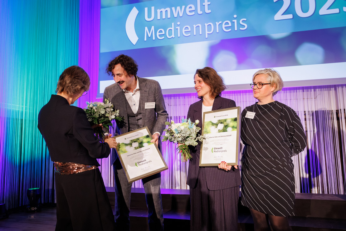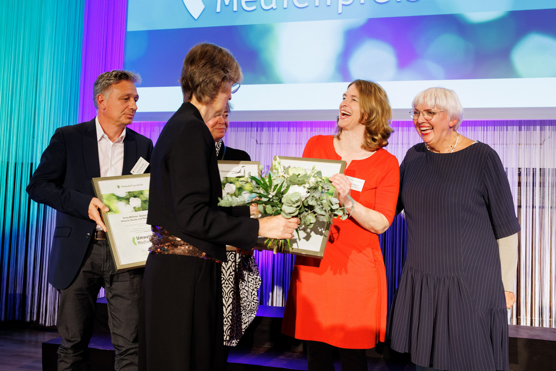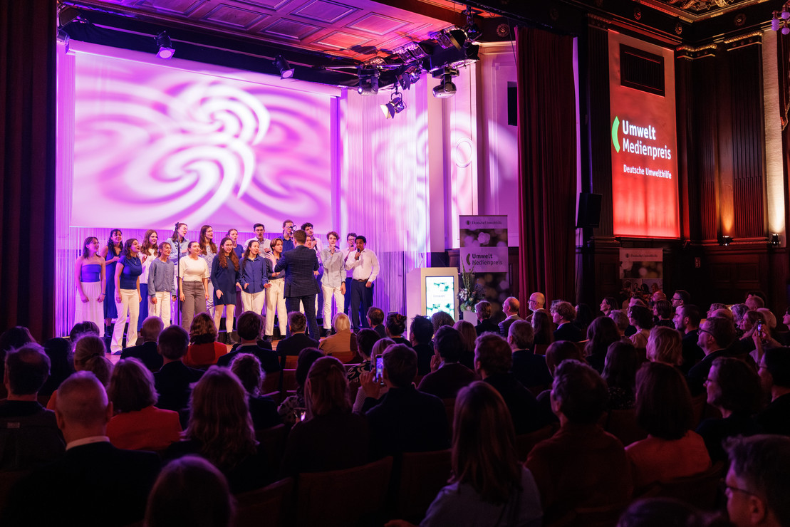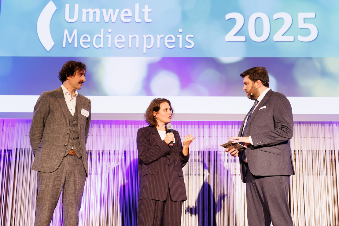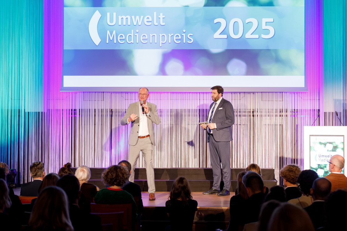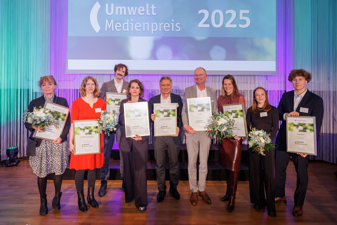 Bei einer großen Preisverleihungsgala im Meistersaal in Berlin haben wir zum 30. Mal herausragende Medienschaffende mit dem UmweltMedienpreis 2025 ausgezeichnet. Wer die strahlenden Preisträgerinnen und Preisträger in fünf Kategorien sind und wofür sie ausgezeichnet wurden erfahren Sie hier.