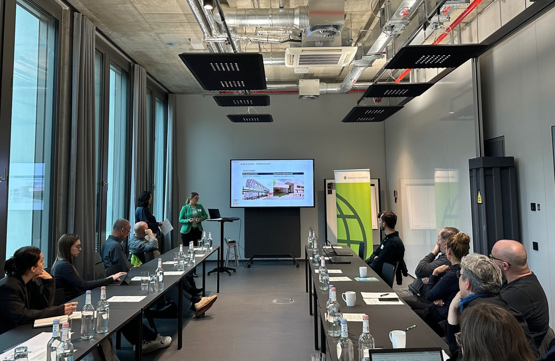 Zum Auftakt gaben Simone Esseling, Leiterin der Stabsstelle Klima & Energie, und Barbara Obermann, Projektleiterin im Städtischen Gebäudemanagement Bonn, einen einführenden Impuls zum nachhaltigen Bauen und Sanieren in der Bundesstadt. Im Fokus stand dabei unter anderem die Sanierung der Schlossbachschule – ein Referenzprojekt, das von der Technischen Universität München im Rahmen einer Ökobilanz untersucht wurde.