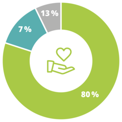 - rund 7 % für die Gewinnung zukünftiger Einnahmen, das hebelt Ihre Spende um ein Vielfaches (Mittelbeschaffung und Öffentlichkeitsarbeit)